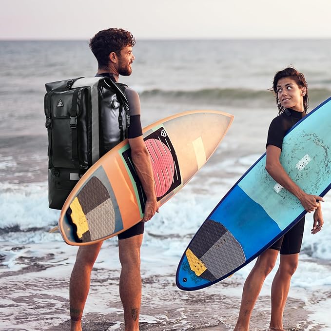 • LARGE DRY BACKPACK: 60 L and 100 L large capacity options for your various trips. The large roll top waterproof backpack with 1 front adjustable buckle flap pocket and 1 internal zipper pocket is easy to load and organize all the items needed for travel