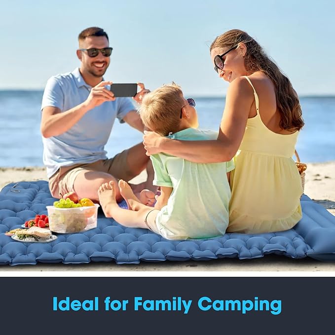- Wider 2 Person Camping Pad: The self inflating sleeping pad is up to77x50x3.5 inches. It is large enough to accommodate two adults, allowing you to enjoy a cosy sleeping space with your partner or friends.