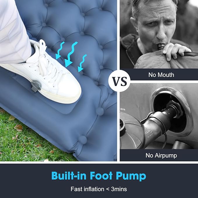 - Built-in Foot Pump: No need for an external air pump. This inflatable mattress features a convenient foot pump for effortless inflation. Simply step on the pump to inflate the mattress quickly and easily.
