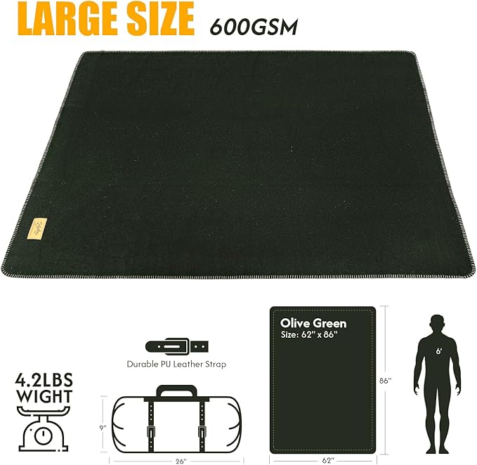 - INDOOR OR OUTDOOR - The large size (62"x 86") of the pure wool blanket keeps you and your friends warm and cozy during camping, tailgating parties, or outdoor concerts. It is also great for military surplus, camping, hiking, stargazing, backpacking, jungle expeditions, boating, fishing, hunting, or keeping in the car trunk as an emergency preparedness blanket.