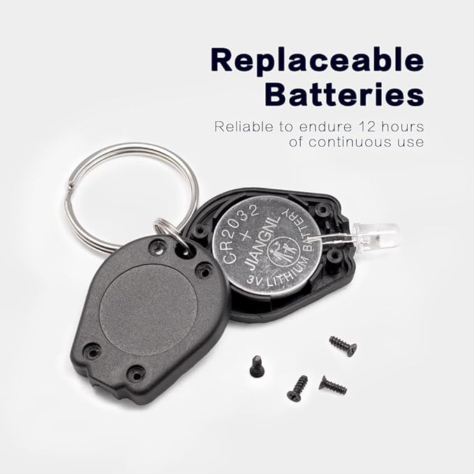- Replaceable CR2032 Battery: The mini keychain green flashlight is installed one CR2032 battery, usually it gives you up to 12 hours of continuous use. You can replace the new batteries easily by user manual.