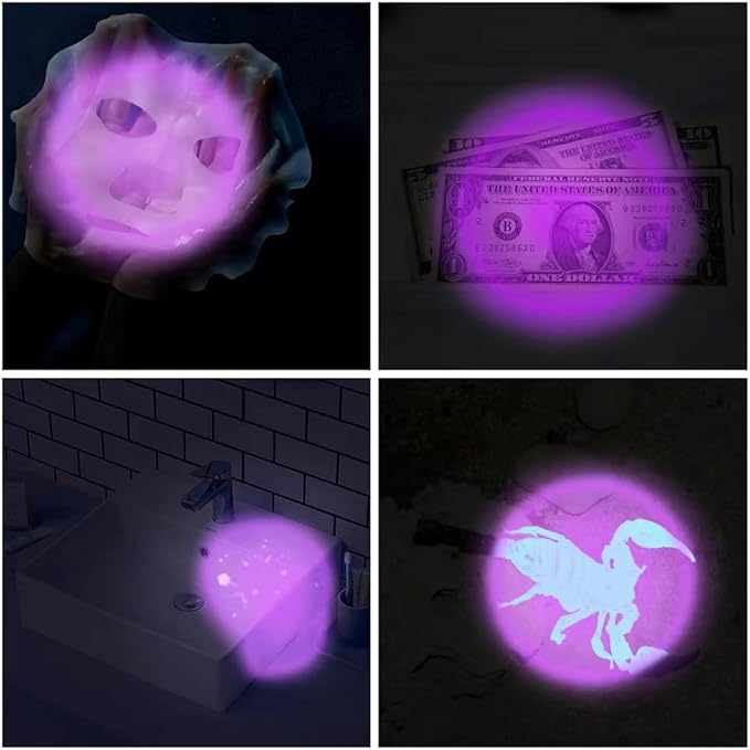 - Ultra Bright UV LED Keychain Flashlight: The UV keychain LED flashlight offers 12 lumens UV LED light. 395nm UV light black light can work perfectly well for detecting urine and bodily fluids in the dark. 395nm UV black light is also used for checking identification cards, credit cards, cash, stamps, etc.