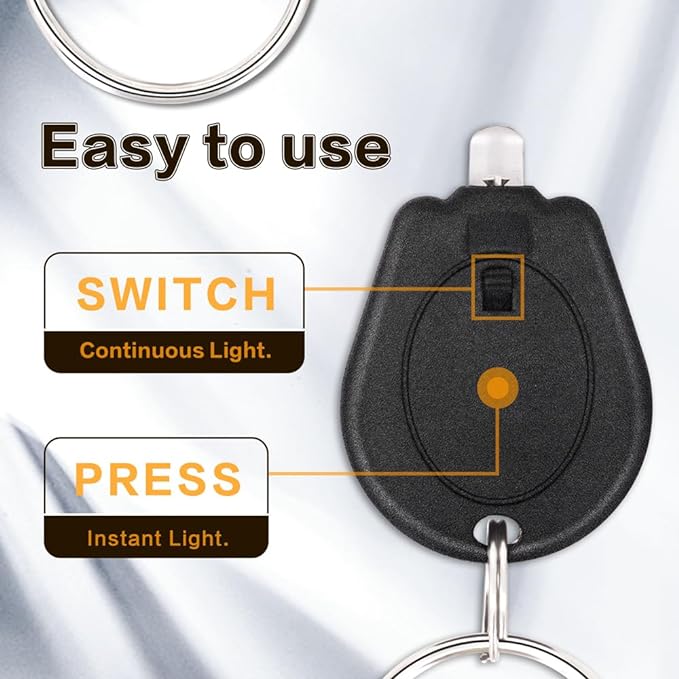 - Two Easy Use Methods: (1)Instant Key Light: Slightly pinch the middle of the UV keychain flashlights with your two fingers to activate instant UV light; (2)Continuous Light: Slide the On/Off Switch to turn on or turn off the mini UV light keychain flashlight.