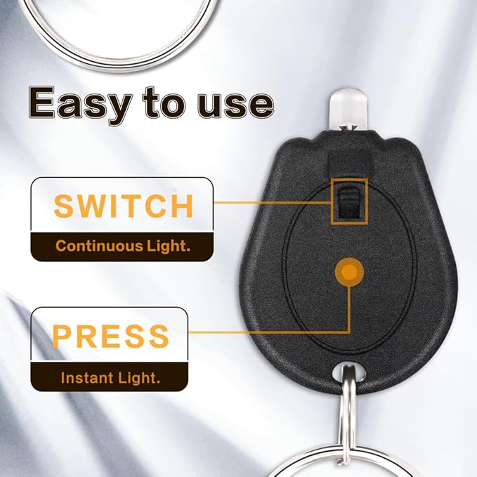 - Two Easy Use Methods: (1)Instant Key Light: Slightly pinch the middle of the green keychain flashlights with your two fingers to activate instant green light; (2)Continuous Light: Slide the On/Off Switch to turn on or turn off the mini green light keychain flashlight.