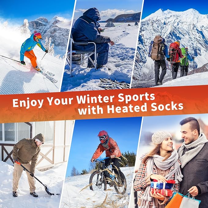 - 【𝐁𝐞𝐬𝐭 𝐂𝐡𝐫𝐢𝐬𝐭𝐦𝐚𝐬 𝐆𝐢𝐟𝐭 𝐟𝐨𝐫 𝐘𝐨𝐮𝐫 𝐋𝐨𝐯𝐞𝐝 𝐎𝐧𝐞𝐬】Featuring 4 heat settings and up to 10.5 hours of battery life,the rechargeable heated socks for men and women is a cozy pair of socks to wear around the house or lodge, to winter sports, or on skiing,ice fishing,hiking,camping,hunting or outdoor work in cold weather.Made for both men and women, the electric heated socks is a perfect gift for a warm winter to your parents, friends and loved ones.