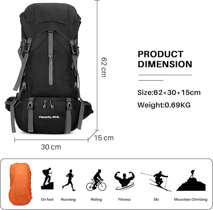 - 🎒Spacious Smart Design: Are you tired of fumbling around for your gear? Our hiking backpack has you covered with a large main compartment for all your essentials and smartly designed pockets for easy organization and access. Plus, a bottom section to keep things tidy