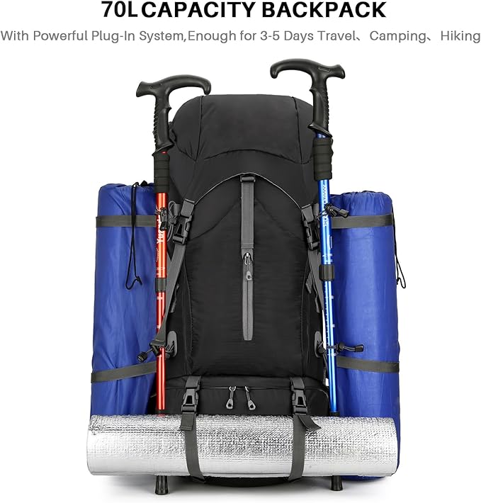 - 🎒High Material & Lightweight: Unleash your inner adventurer with the OKYUK 70L backpacking backpack. Skillfully crafted from high-grade, tear-resistant 900D Oxford materials, ensuring a perfect balance between durability and lightweight, our camping backpack is your go-to for all outdoor activities