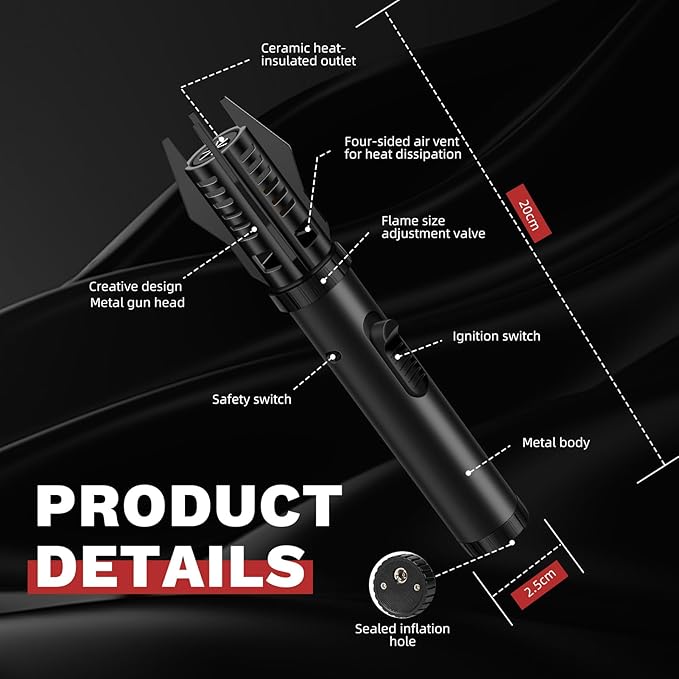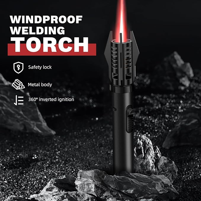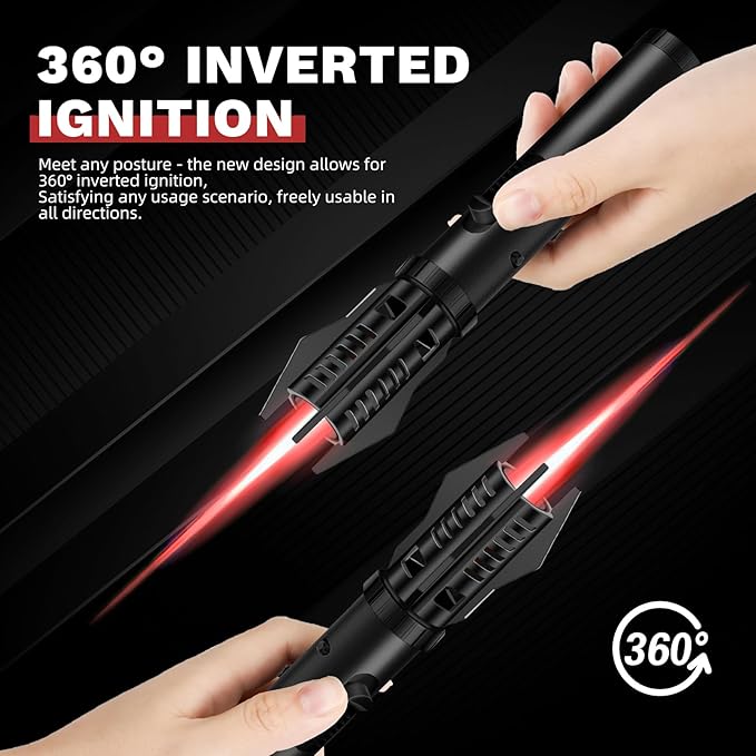 - Sealed filling hole & 360° inverted ignition: With a simple twist, users can adjust the flame size, making it suitable for a wide range of tasks, from welding to gourmet cooking. The sealed filling hole design allows for easy refueling, making this lighter an eco-friendly choice as it can be refilled and reused, reducing waste. The 360° inverted ignition capability allows for easy and precise lighting from any angle.
