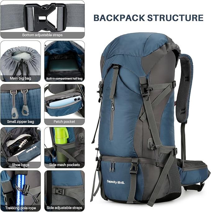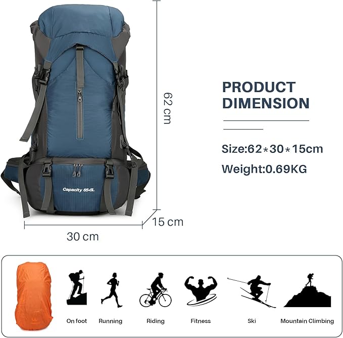 - 🎒Spacious Smart Design: Are you tired of fumbling around for your gear? Our hiking backpack has you covered with a large main compartment for all your essentials and smartly designed pockets for easy organization and access. Plus, a bottom section to keep things tidy