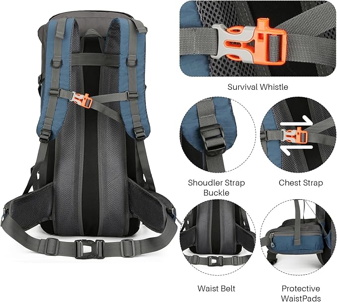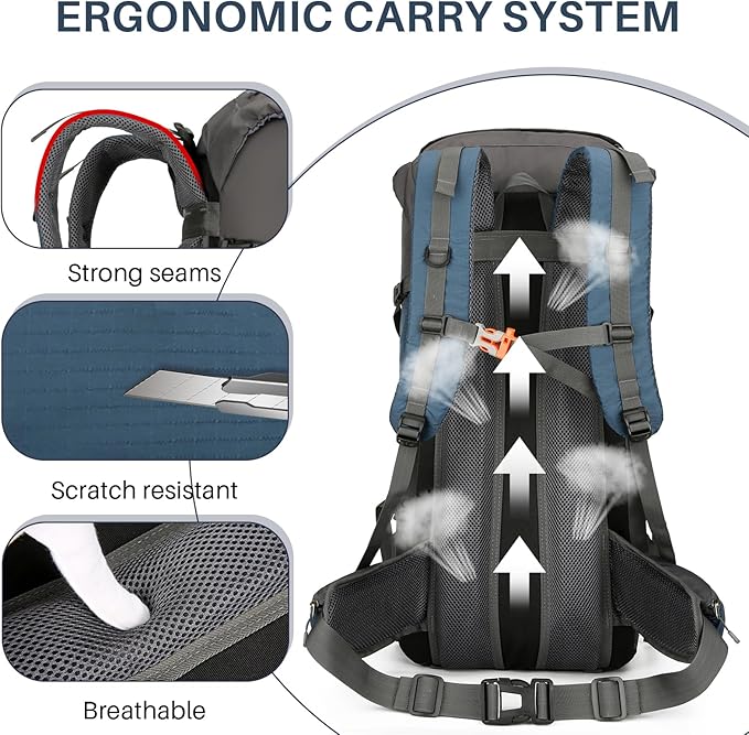 - 🎒Convenience & Ergonomic: Long trips are no longer a pain with our backpack's ergonomic design that evenly distributes weight, breathable mesh for ventilation, and adjustable chest and waist straps. Our camping backpack has enough compartments for everything you need, keeping your items safe