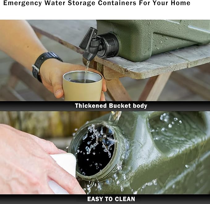 - 【Emergency Preparedness and Daily Use】Enables you quickly and safely store all the water your family needs in the event of an emergency or natural disaster like hurricane, tornado, earthquake, fire, flood or drought. Also great for daily use. Automobile emergency water. Hand-washing stations at events and festivals. Transport large amounts of water easily.