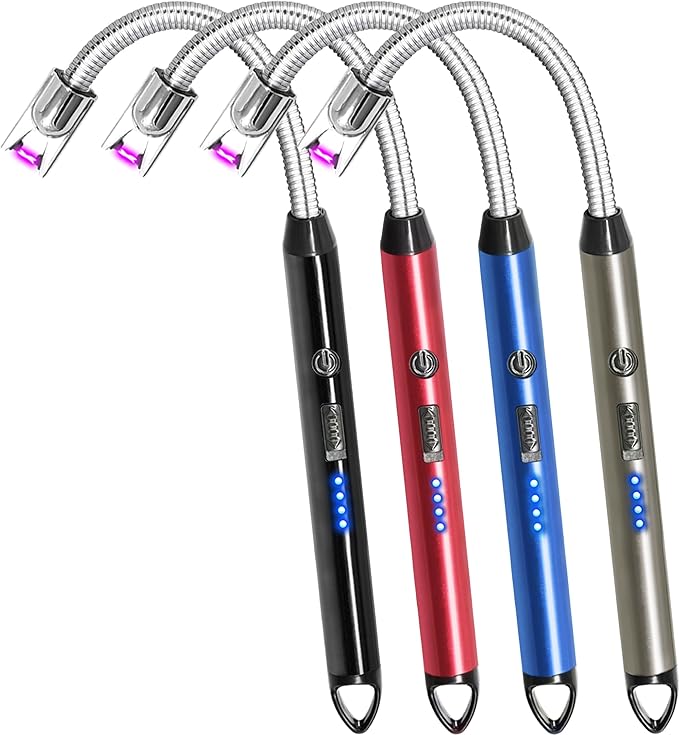 4 Pack Candle Lighter Electric Lighter Rechargeable Arc Lighter Windproof Flexible Neck Long Lighter Rotate 360 Plasma Lighter USB Flameless Lighters with LED Battery Display Candles Grill BBQ Camping