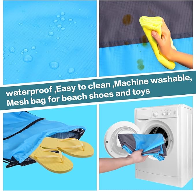 - 🛡【Waterproof & Sand-Free Blanket】 Crafted with durable microfiber polyester, our beach blanket ensures easy cleanup by shaking off liquids. Comfortably accommodating up to 4-10 people, it's ideal for group gatherings and family vacations. The wind-resistant design with sand anchoring pockets and securing straps ensures stability on windy days.
