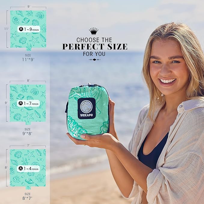 - SIMPLE DESIGN & DOUBLE ANCHORED-WEKAPO beach blanket is designed as simple as possible so it has eliminated 5 sticking out sand pockets and added 4 corner pockets that can be used for storage or sand anchor. If it's windy day, it can be nailed down on beach by metal stakes coming with our blanket.