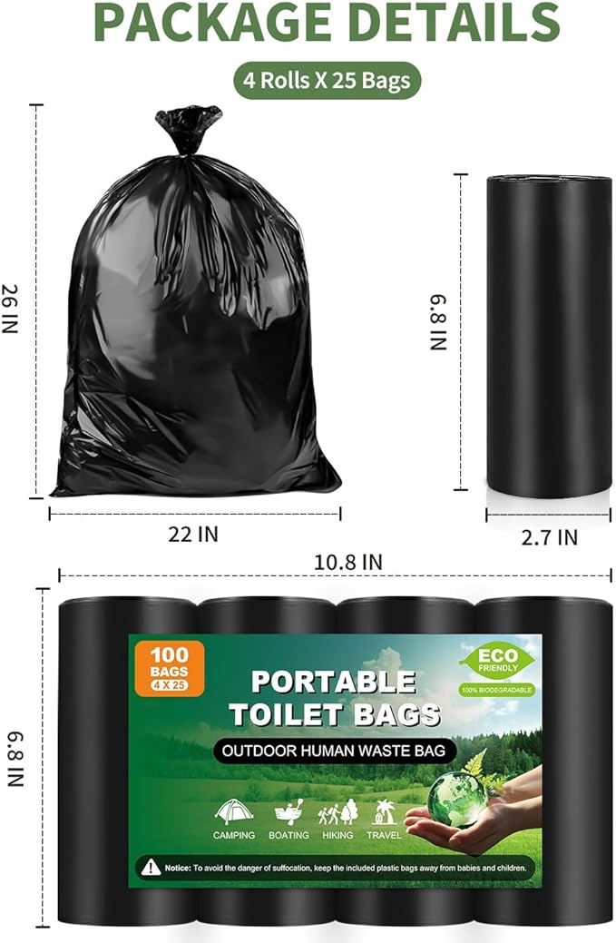 - ππππππππ & ππππππππππππ - Our camping toilet bags come in Convenient Rolls that are easy to carry and store. Whether you're camping, traveling, boat or just need a reliable compost bag for your home, our biodegradable garbage bags are the perfect solution. Use them for camping toilet seat, kitchen waste, portable toilet for adults, portable camping toilet, rv toilet, cat litter bags and more. With 100pcs compost toilet bag in each pack, you'll have plenty for all your waste disposal needs.