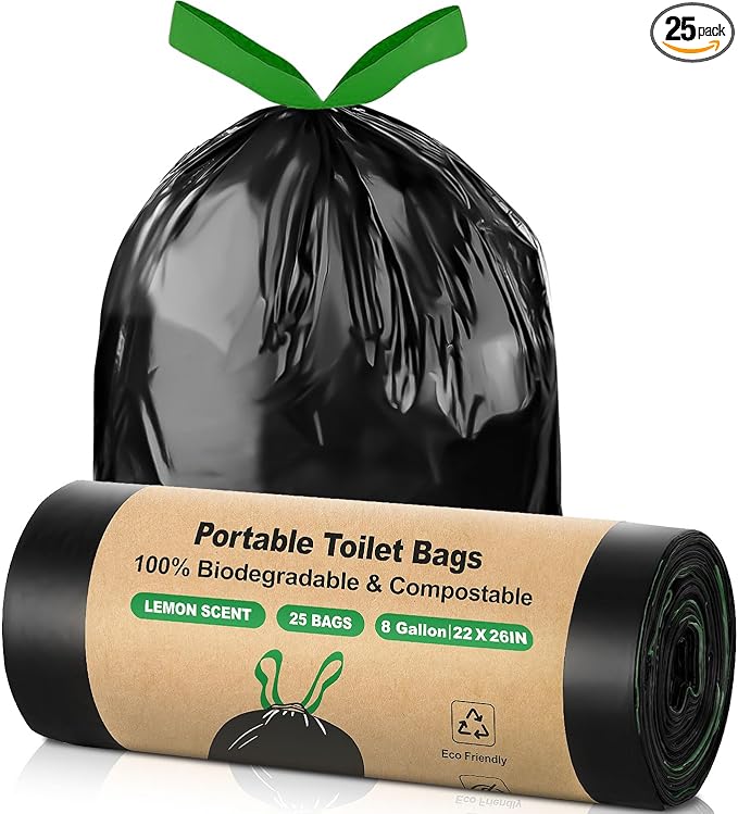 - ππππ πππππππ ππππ - Drawstring Feature - Simply remove and seal the biodegradable toilet bags by pulling the drawstring, then toss it away β no more scrubbing messes for your portable toilet or portable potty. With 1 packs of 25 camping toilet bags each, they're pre-separated for effortless transport and ultra-convenient use.