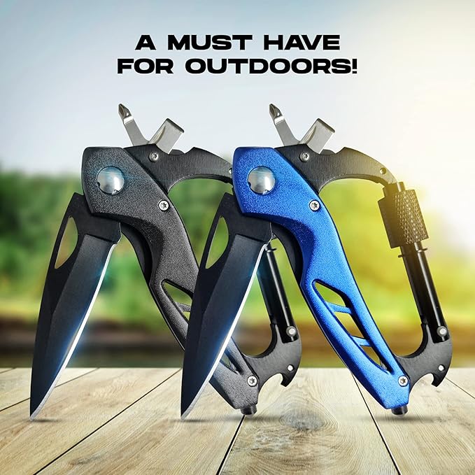- Two-in-One Value: Each purchase includes a pair of carabiner knife multitools - one in sleek blue and another in stylish black. Be well-prepared for outdoor adventures with this indispensable tool.