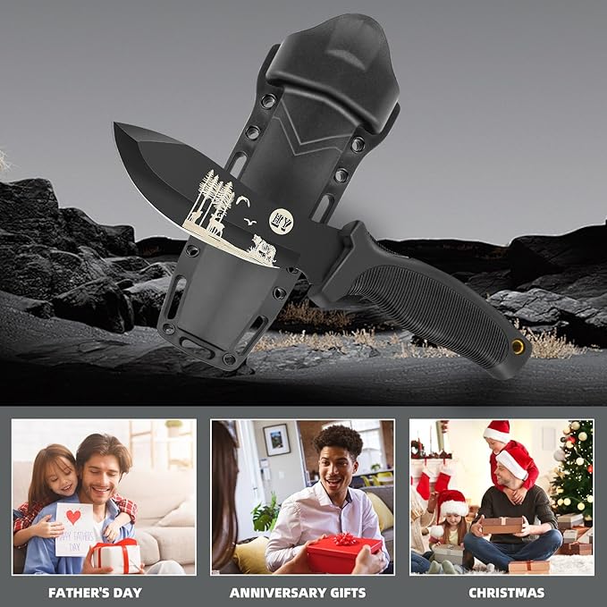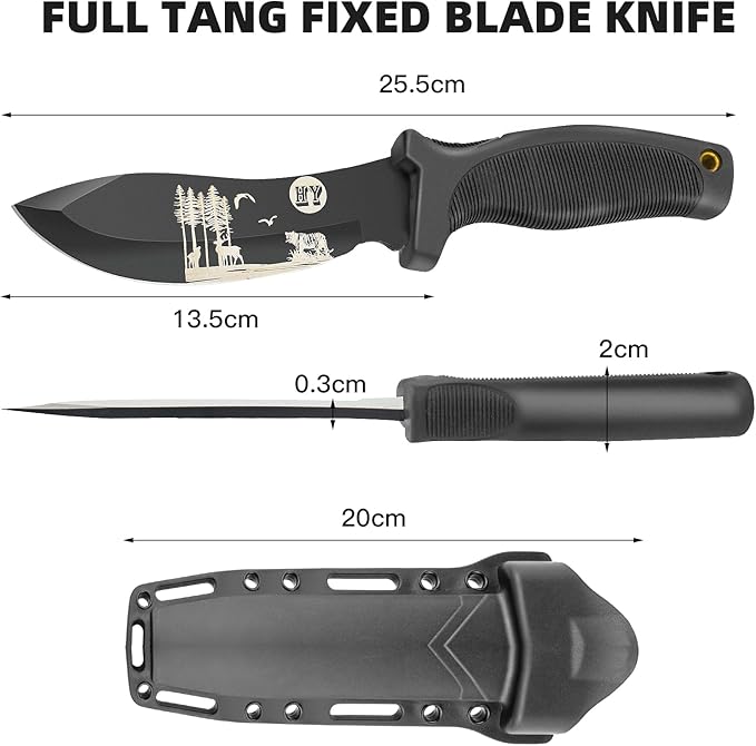 Fixed Blade Hunting Knife, Black High Hardness Plastic Handle with Sheath,Suitable for Hiking, Adventure, Survival and Collection (Black)