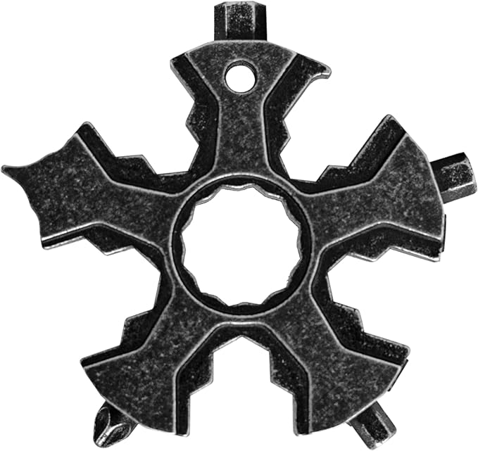 - 🔧【18-in-1 Tool】The snowflake multi tool includes 18 kinds of functional tools, such as hex key, 4mm allen wrench, 5mm allen wrench, 6mm allen wrench, 5-14mm wrenchopen end wrench, phillips screwdriver, slotted screwdriver, flat screwdriver, bottle opener, box cutter, package cutter.