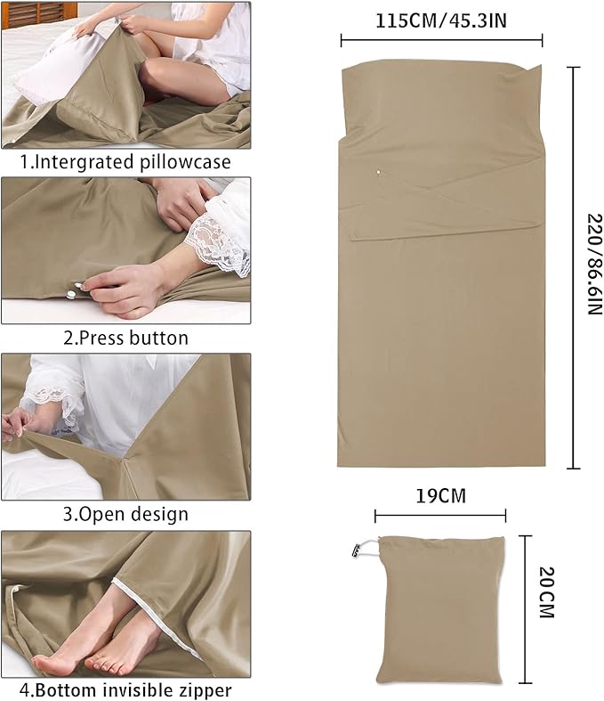 - 💜【LARGE SPACE】Travel sheet liner size is: 210 x 115 cm/82.6 x 45.3in, suitable for all seasons, the sleeping bag can be put inside the winter sleeping bag. Only need to wash the liner, very convenient and quick.