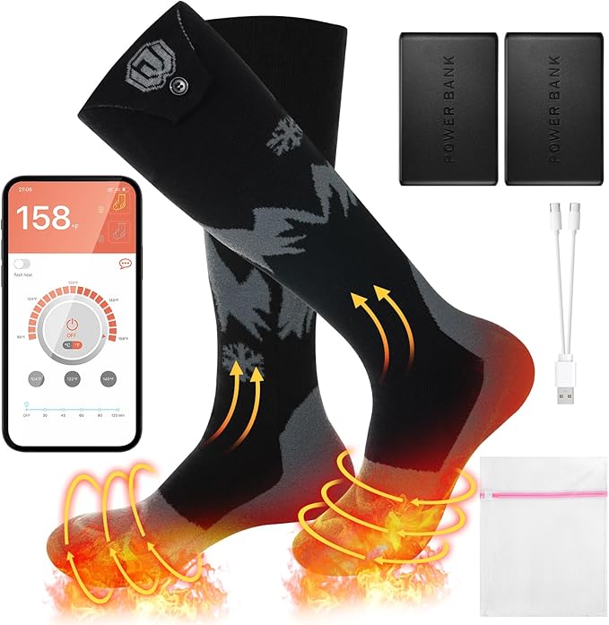 Heated Socks for Men Women with APP Control Rechargeable Electric Heating Socks Washable Foot Warmer for Winter Hunting Skiing Fishing Climbing Hiking 5000mAh Battery