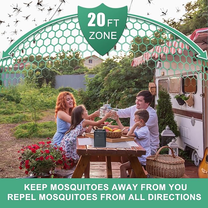 Mosquito Repellent Outdoor Patio, Rechargeable Mosquito Repeller Indoor with 20' Mosquito Protection Zone, for Camping