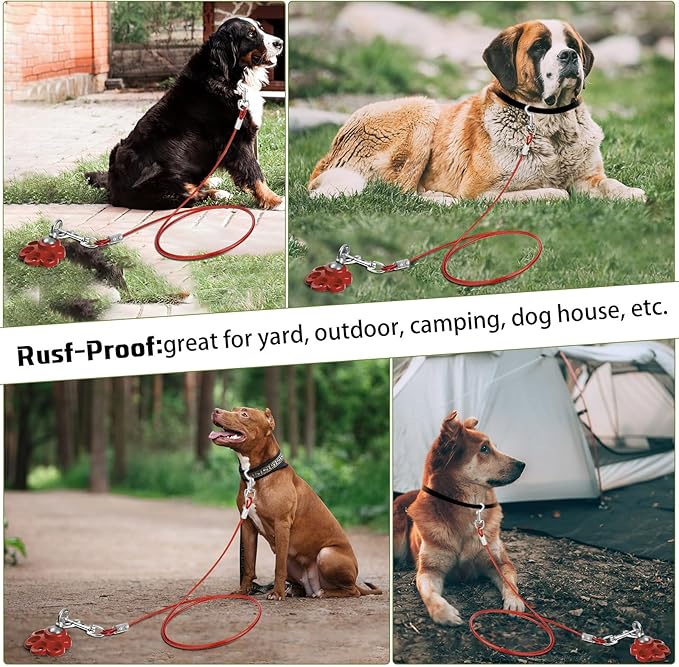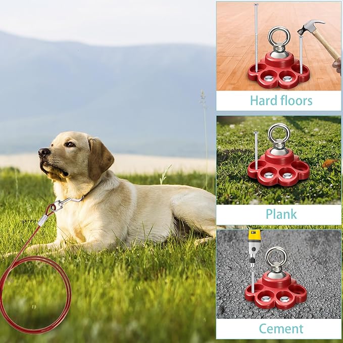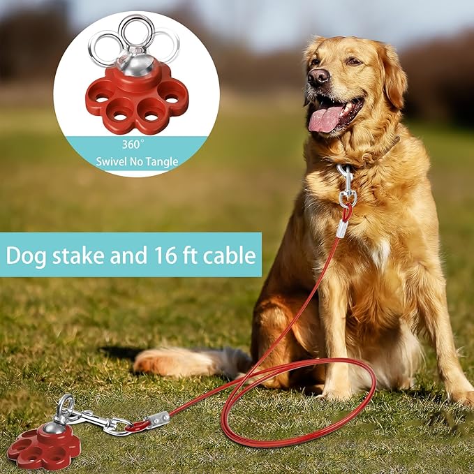 - 360° Swivel and Tangle Free: designed with a full 360 degree swivel ball, let's your dog freedom to roam without tangle; Even multiple pets simultaneously, and continue to stay tangle free; The loop of swivel base is easy to attach your cable tie-out or leash