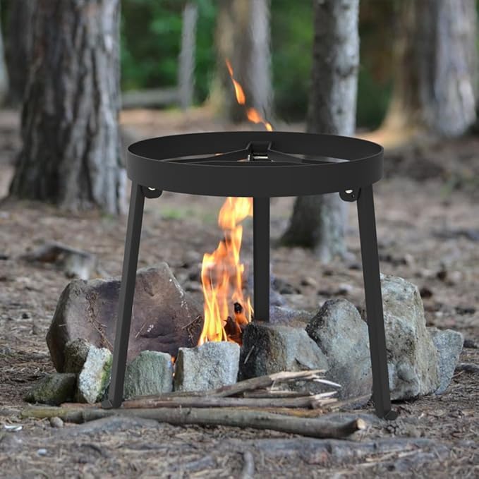- The campfire tripod is suitable for both outdoor camping and backyard campfires. essential campfire tripod for outdoor cooking equipment. Decorate your fireplace with this campfire tripod or even use it for Halloween flame decorations!