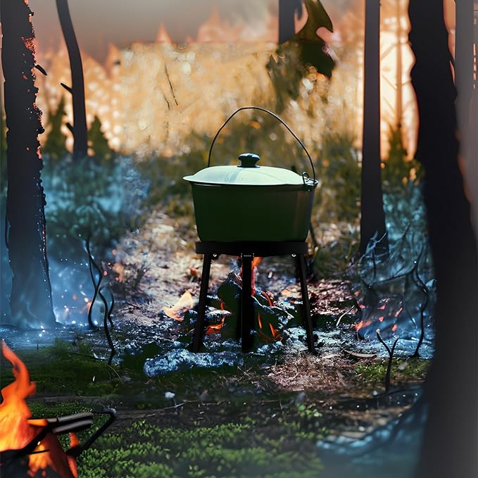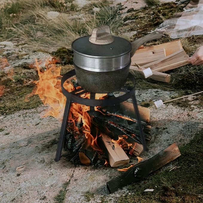 - The PGAKLTG Campfire Cookware Stand with collapsible legs ensures portability of the cookware tripod.