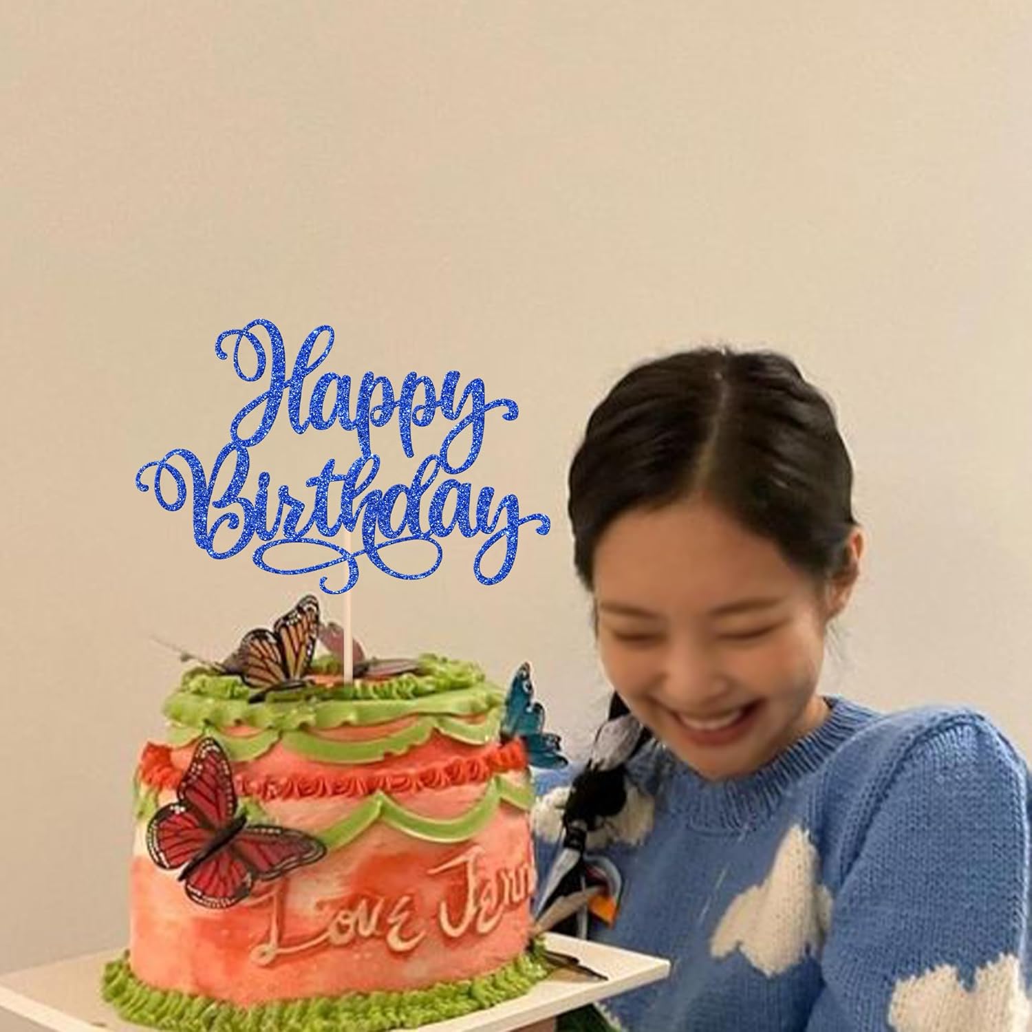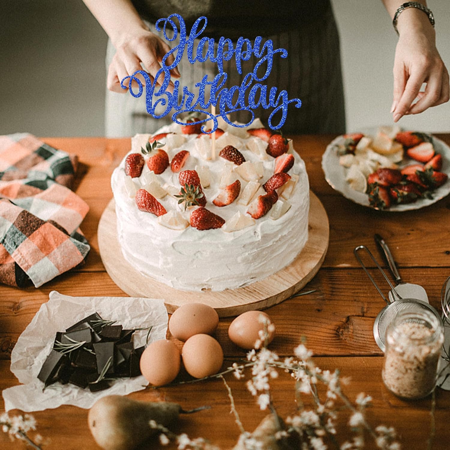 1 PCS Happy Birthday Cake Topper Glitter Happy Birthday Cake Pick Bunting Decor for Anniversary Celebrating Happy Birthday Party Cake Decorations Supplies Blue