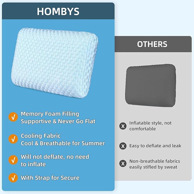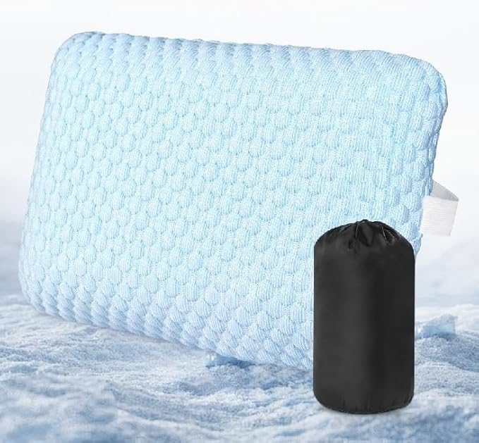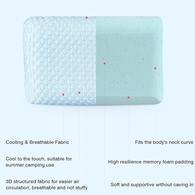 HOMBYS Cooling Camping Pillow Lightweight, Memory Foam Travel Pillow with Easy to Carry Portable Bag, Strap Designed for Secure, Suitable for Beach, Camp,Travel, Hammock, Light Blue