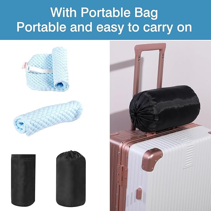 - 【Portable】The pillow is lightweight in design and comes with a portable pouch, it can be easily packed into a compact travel bag or placed on a suitcase, it can be taken out and restored to its original shape in seconds, easy to carry , suitable for all kinds of travelling (such as camping, fishing, hiking, beach, etc.). Great for taking on planes, trains and automobiles.