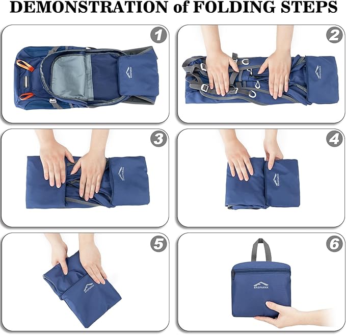 - Foldable & Lightweight:The Foldable backpack weighs only 0.88 pounds and can be easily folded into a small one for storage. The folded size is only 7 * 6* 2inch, which is not bigger than a book and takes very small space.To avoid overweight charge, simply unfold from your checked bags and use it as a carry on for your excess baggage.
