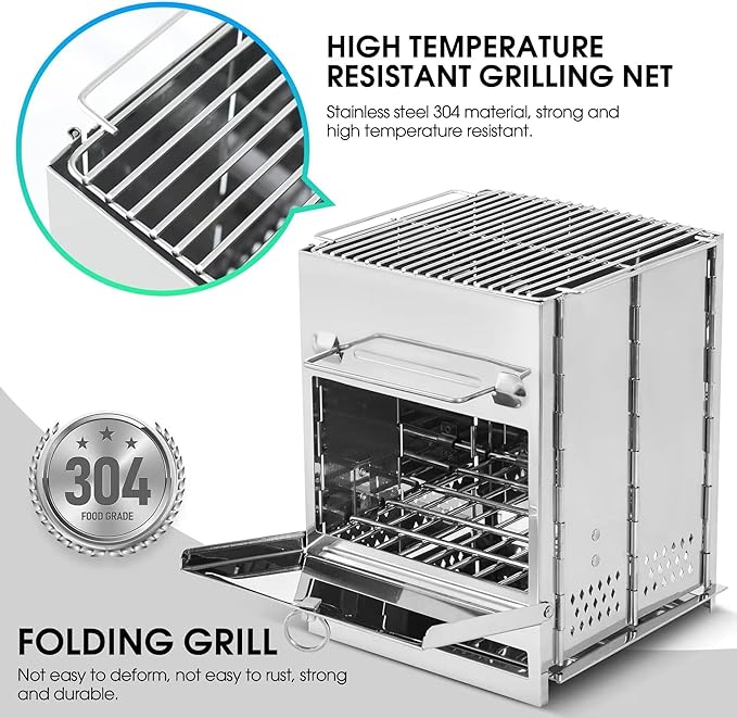 - Contains a rocket stove, a ash pan, a grill, a handbag, no need to disassemble, ready to use. Don't worry about not being able to use it after deformation.