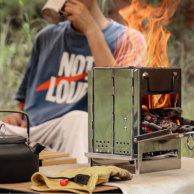 Wood Burning Camp Stove Camping Stove Folding Camp Stove Mini Camp Stove Folding Stove Wood Burning Rocket Portable Backpacking Stainless Steel Light Folding Stove for Outdoor Hiking BBQ
