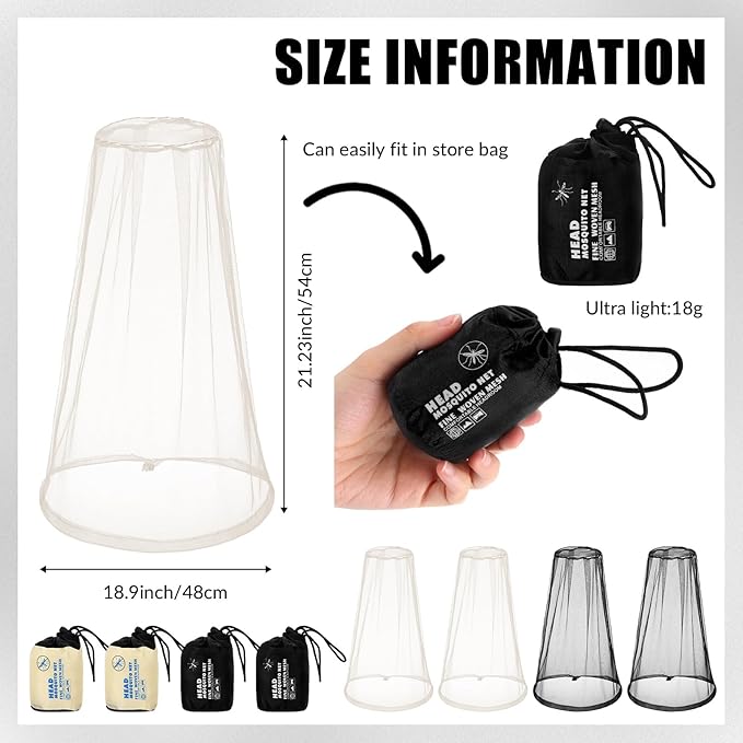 • Feature: this mosquito mesh head net has good performance on saving you from the mosquitoes, bugs, flies, gnats, no see ums, etc. from your face head and neck; Also portable to store