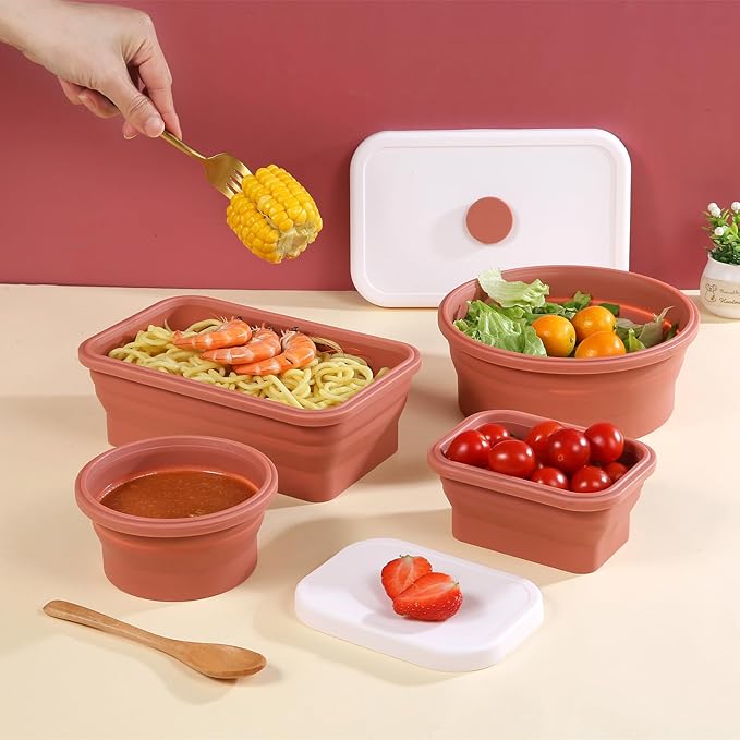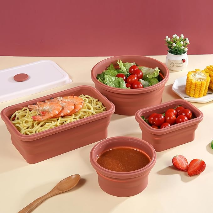 - ✅【Safe Material】Collapsible bowl and lid are made of silicone, BPA-free, freezer, microwaveable and dishwasher safe.Silicone has some big advantages over plastic by being able to use in the microwave and dishwasher without melting or deforming.