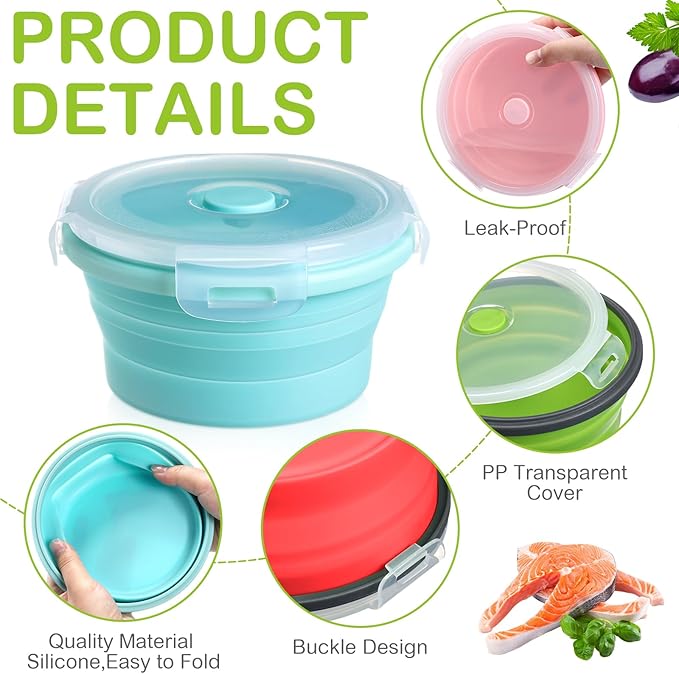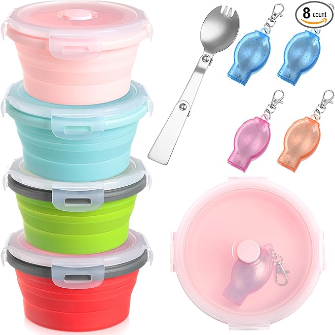 - Quality Silicone Material: crafted from quality silicone, these silicone collapsible bowls with lids are both safe and sturdy; It can be applied to hold milk powder, cereal, dry fruits, snacks, cookies, sweets, breakfast items, fruits, vegetables and more, foldable fork is made of stainless steel material, it will not bring bad taste and smell to food, which is good for health, they are easy to clean, dishwasher safe, and promote healthy use