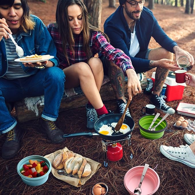 - Leakproof Cover: our camping bowl with a leakproof cover, fits comfortably and reduces the possibility of spillage; By keeping the bowl clean, no dust and no dirt, it avoids food from spoiling, the lid and silicone base is cut resistant and functions as a cutting board, whether you are camping, having a picnic outdoors or working at work, you can carry foldable tableware with you