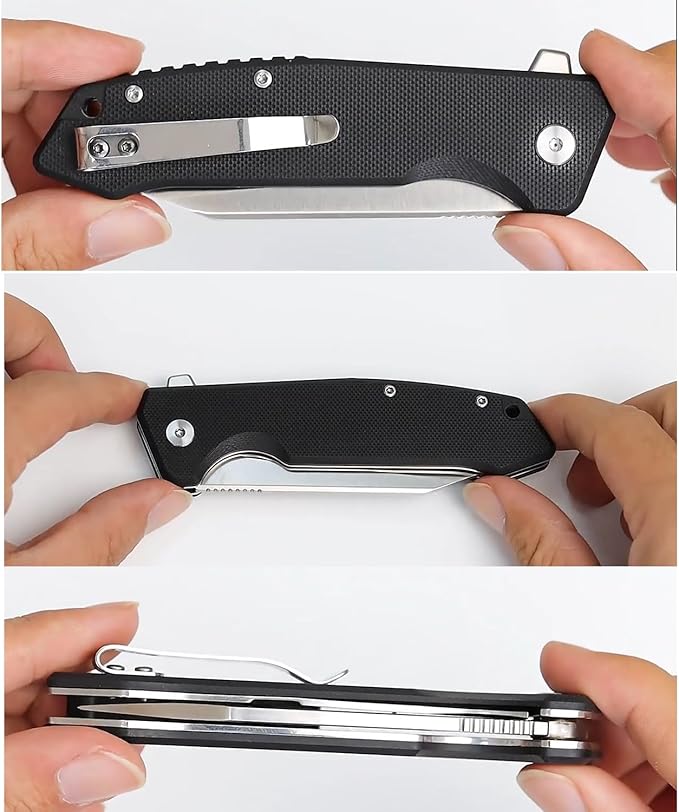 Tactical Folding Pocket Knife 3.5" D2 Drop Blade G10 Handle W/Clip for Men Woman Outdoor EDC Fathers Day Gift