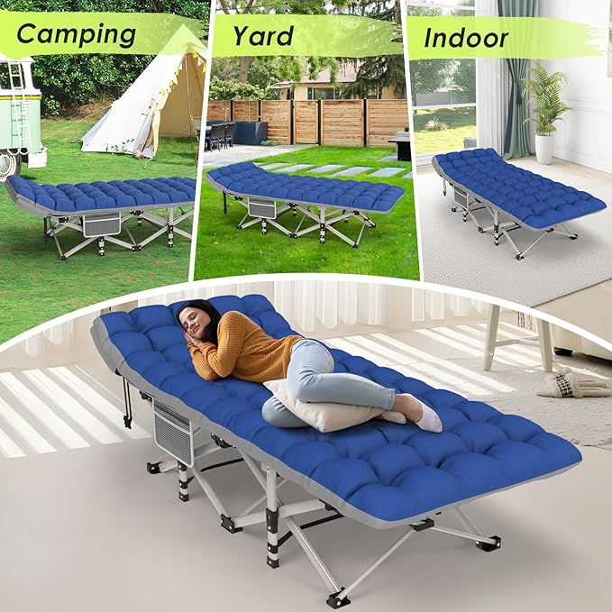 - 【Wide Range of Applications】 This camp cot has a large built-in side pocket to store your water bottle, phone, glasses, keys, books, toys, and more. This is a great camping bed for adults and kids. Perfect for camping, road trips, beach, backyard, office naps, and more