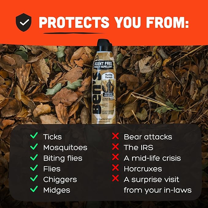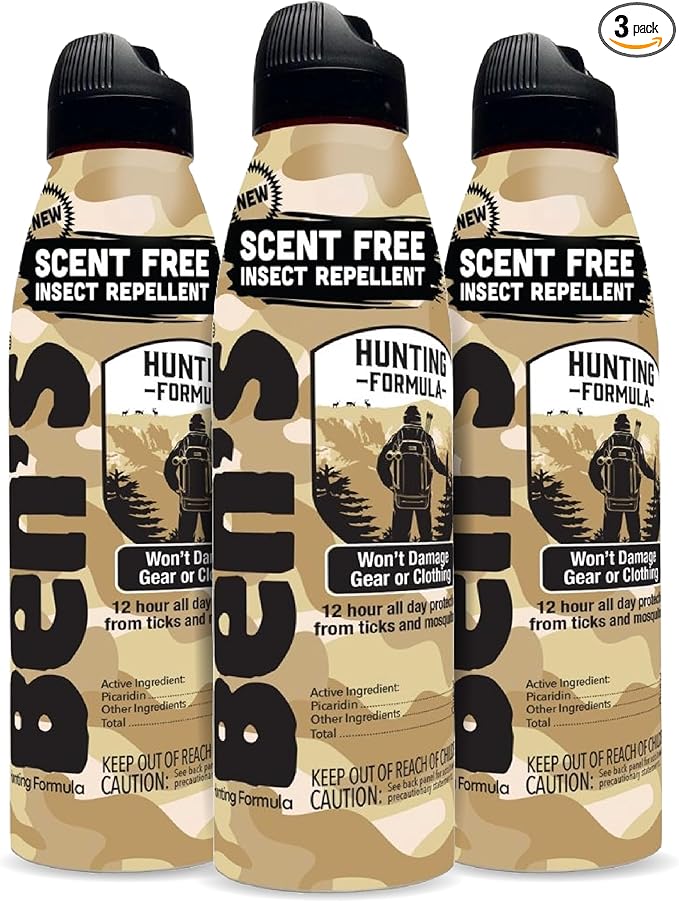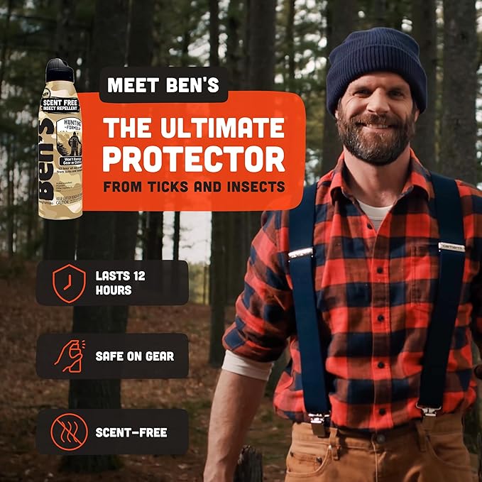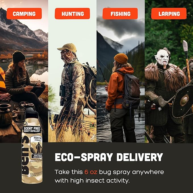 - Gear-Friendly & Scent-Free Spray: Apply Ben's bug spray without fear of damage to your outdoor gear and apparel; its scent-free formula allows you to stay camouflaged during hunting or fishing trips