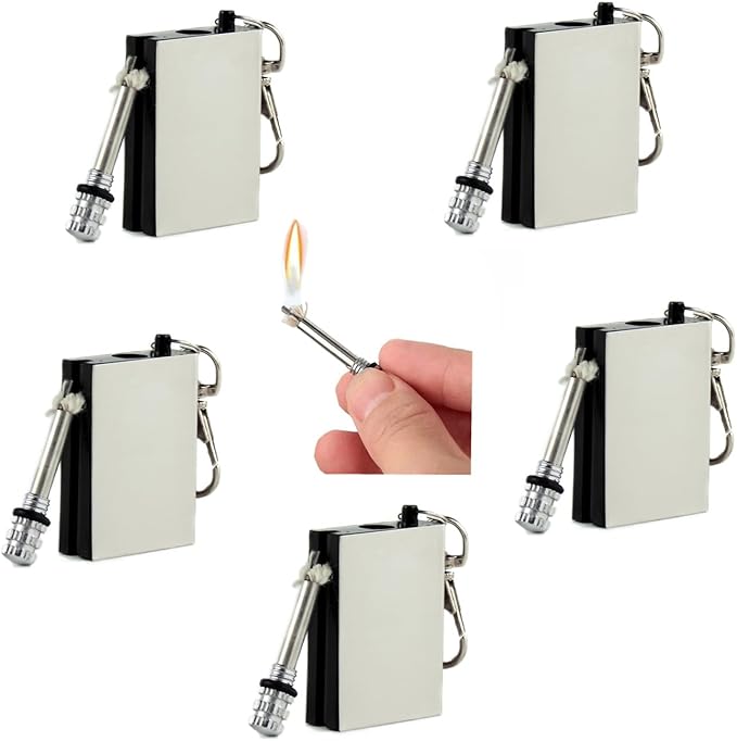 5 Pieces of Emergency Survival Camping Fire Starter Set, Forever Lighter, Flint Metal Match, Waterproof Keychain Permanent Match, Unlimited Waterproof Stick