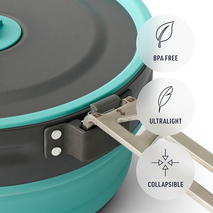- 2.2 liter camping pot collapses for easy packing and extends out into a full-function cookpot