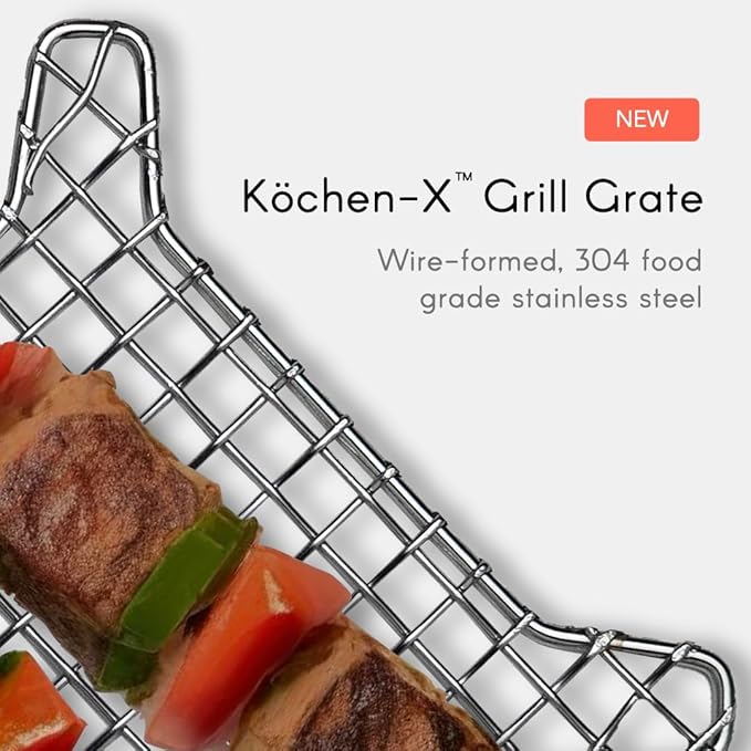 - Köchen-X Grill Grate - Our new addition, the Köchen-X grill grate, is wire-formed from food-grade stainless steel, just like the rest of the Stöker. This folding camp stove is engineered for more than just boiling water, it's perfect for flame grilling whatever nature serves you.
