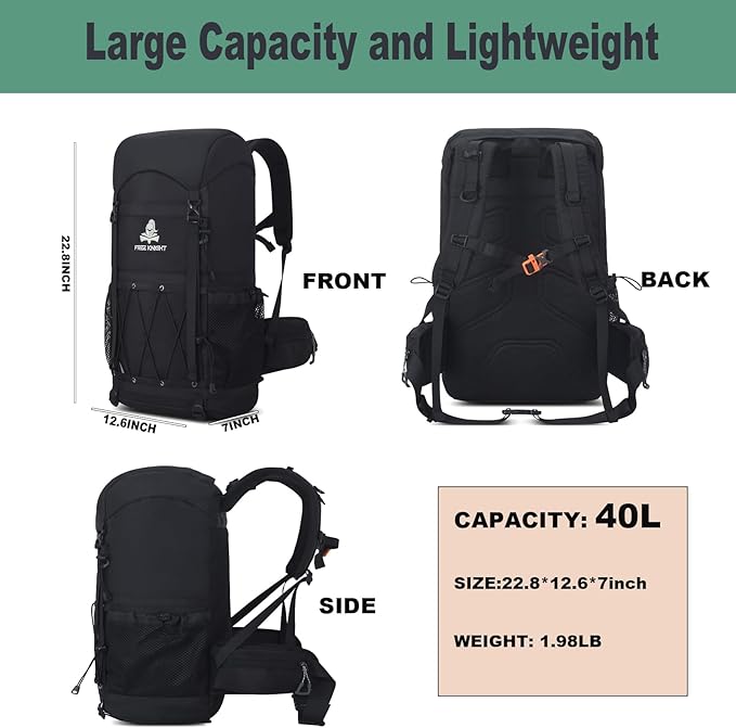 - Capacity: 40L, Size: 58 x 32 x 18 cm (22.8 x 12.6 x 7 inches), Weight: 1.98lb