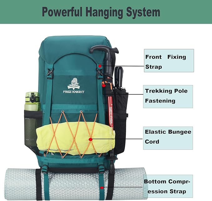 - Multi Compartment: Generous main compartments and multiple pockets keep all your gear safe and organised. The spacious main compartment can holds sleepingbag, clothes or other everyday essentials. With an internal pocket for water bladder. There is also a front zip pocket. The elastic cord is designed to store items that need to be easily accessible. It also has two side pockets for your water bottle or umbrella.