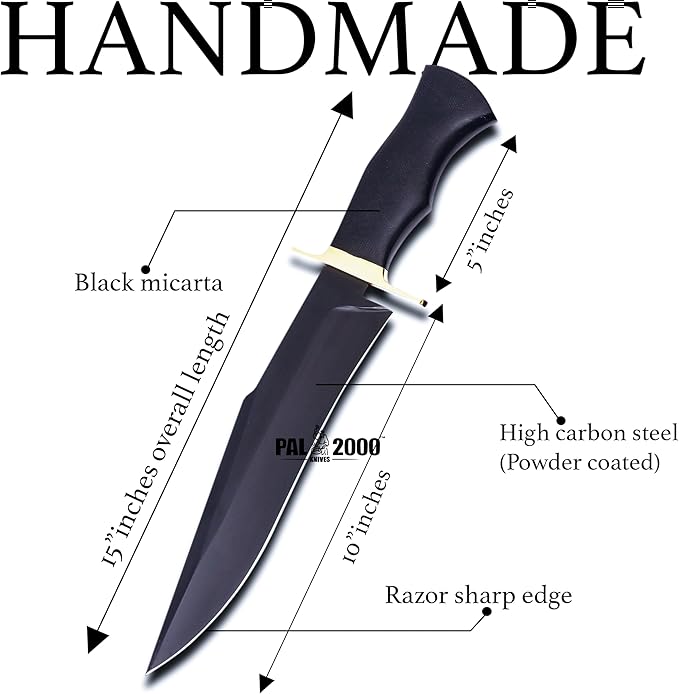 - Knife Total length: 15.00’' inches, Blade length: 10.00’’ inches, Handle Length: 05.00’’ inches. Handle Material: Micarta.