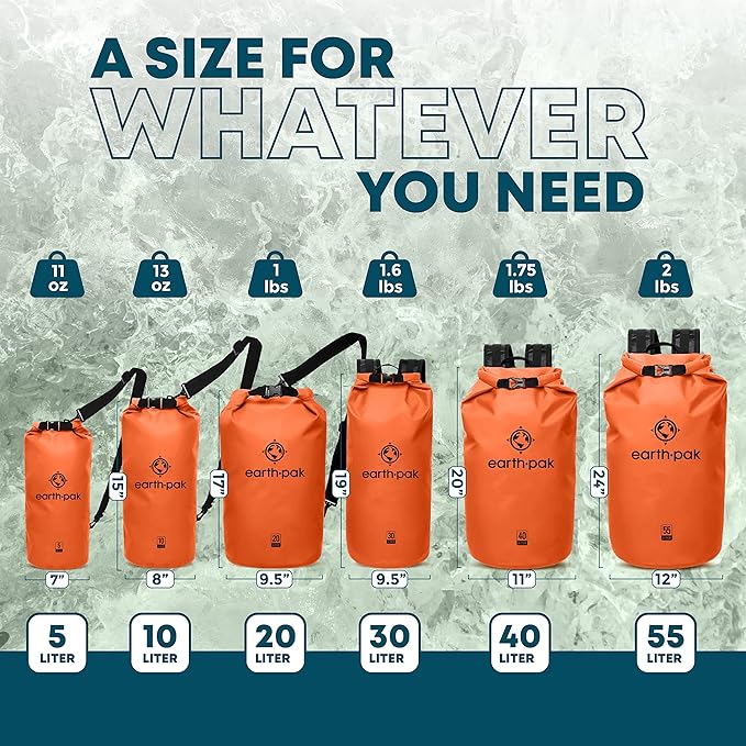 - RELIABLE PROTECTION: We believe our earth pak dry bags are the best out there--bar none. These dry bags are meant to last for years and provide waterproof protection for even the most rugged users.