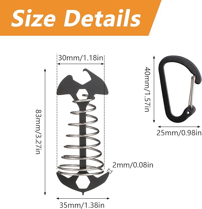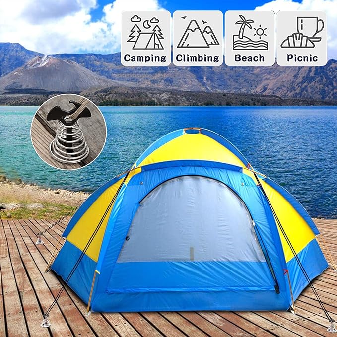 - 🐟[Slip & Adjustable Spring]: These deck nails are designed in the shape of fish bones, and the bottom double hook design creates stability better and prevents the nails from falling off or rotating due to the shaking of the tent. The telescopic spring shape can be adapted to decks of different thicknesses.